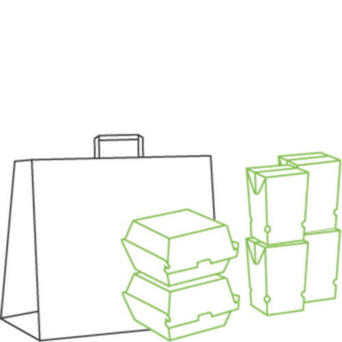 Flat handle paper bags with a flat paper handle are strong and sturdy, and stand upright on counters for easy loading. Paper bags are recyclable, compostable and reusable. Recyclable Home Compostable Commercially Compostable