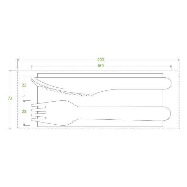 16cm knife, fork & napkin wood cutlery set made from sustainably sourced FSC™ 100% certified birchwood. This takeaway cutlery set is compostable & carbon neutral. A more eco-friendly alternative to plastic cutlery sets.