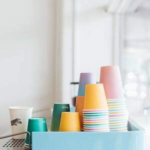 A more environmentally friendly coffee cup made from responsibly sourced paper and a plant-based Ingeo™ bioplastic lining. EcoCup hot cups are leak-proof, sturdy and premium quality with exceptional insulation. Our Colour Series is unique and eye-catching, certified for commercial composting.