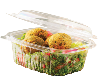Castaway' Bettaseal' Food Containers are designed for superior presentation and extended shelf life for food. These clear rectangular containers feature hinged domed lids that are perfect for displaying bakery, deli, takeaway or retail items.