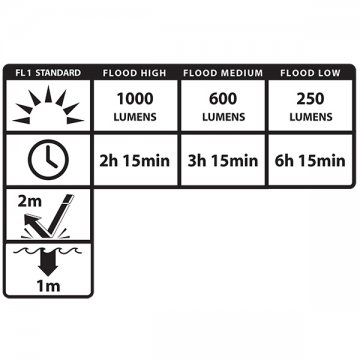 - 3 brightness levels plus strobe