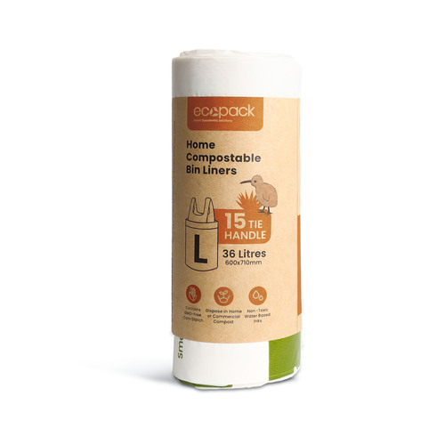 Ecopack 36L Large kitchen tidy liner with tie top. Biodegradable and compostable.