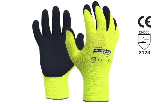 Activgrip Lite hi-vis glove with MICROFINISH' latex coating for superior grip