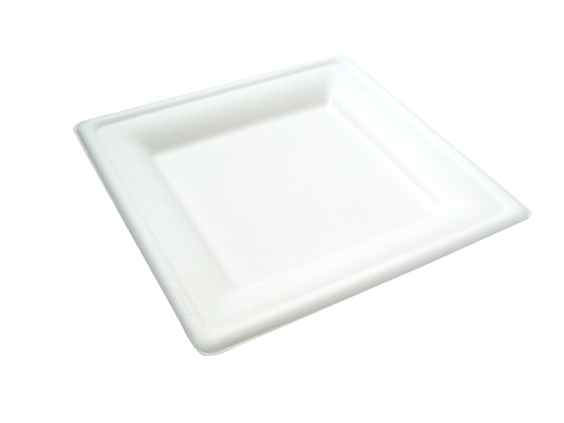 Our stylish 8in square plate made from sugar cane fibre. It is perfect for hot or cold meals. Sturdy, stylish and good for hot or cold food. Microwave and freezer safe. Far more sturdy than paper plates, and far less carbon too.