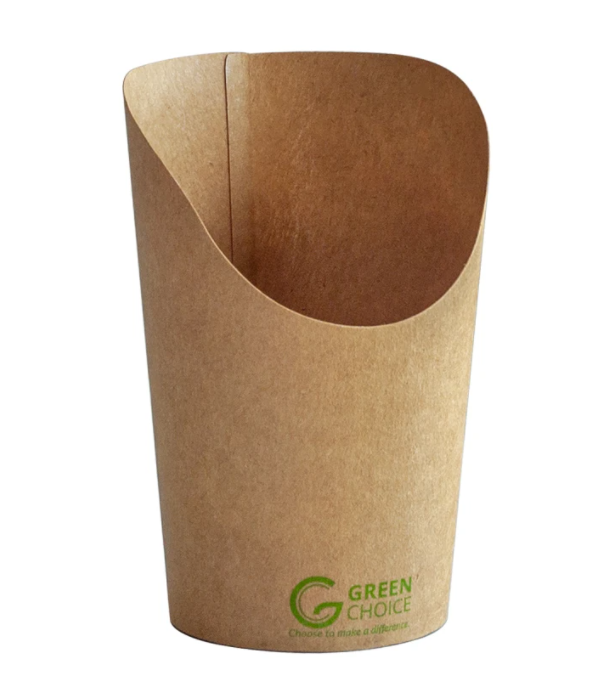 Our Kraft Chip Cup -12oz is very popular in NZ markets. They are made of card and lined with PLA, a plant-based plastic, and not a petroleum-based plastic. This provides a barrier to oils and sauces and avoids leakage. As food contamination is not a problem, the waste container can be sent to a landfill (to eventually breakdown into plant matter) or sent to a commercial composting centre (for conversion into compost.