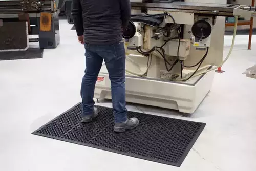 Safety Cushion is a natural rubber anti-fatigue safety mat which accommodates spills and debris ideal for wet areas, factories, workbenches etc.