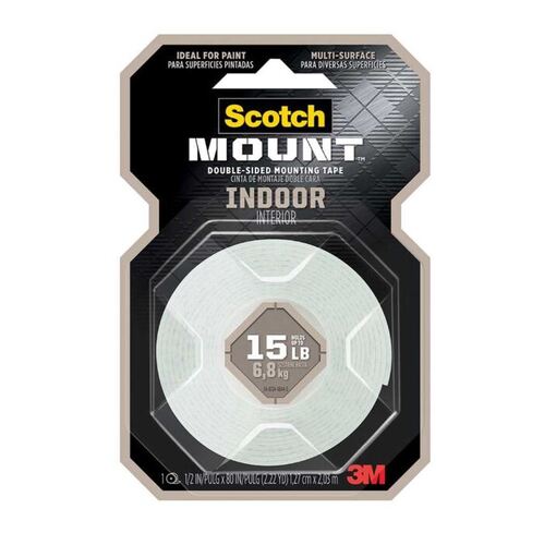 Scotch® Permanent Mounting Tape is a double-sided, foam mounting tape. Ideal for mounting light to medium weight objects. Use on most wall surfaces, including tile and wood surfaces, that are clean, dry and smooth. For indoor use only. Use instead of push pins, screws, nails or bolts. Instant, mess-free bond. 12.7mm width x 2.03m length. Holds up to 6.8kg.