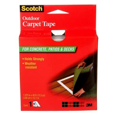 Scotch Outdoor Carpet Tape features a unique, weather resistant adhesive. Designed for permanent outdoor use. It is ideal for adhering carpet to rough surfaces such as concrete, patios and decks. 35mm x 12.1m.