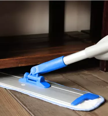 Made from aluminium and plastic for a light-weight mop complete with a thin and flexible 360° rotating flat mop head, great for corners and getting under low furniture.